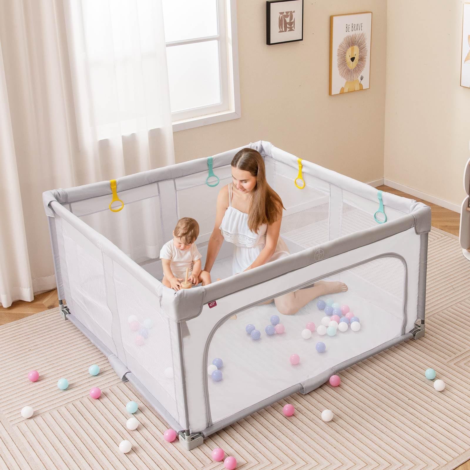 - Easy Access & Engaging Fun: This play yard is equipped with a convenient zip-open side door that offers easy in-and-out for babies and toddlers. Included accessories are 50 colorful ocean balls and 4 pull-up rings to promote physical activity and motor skills development.