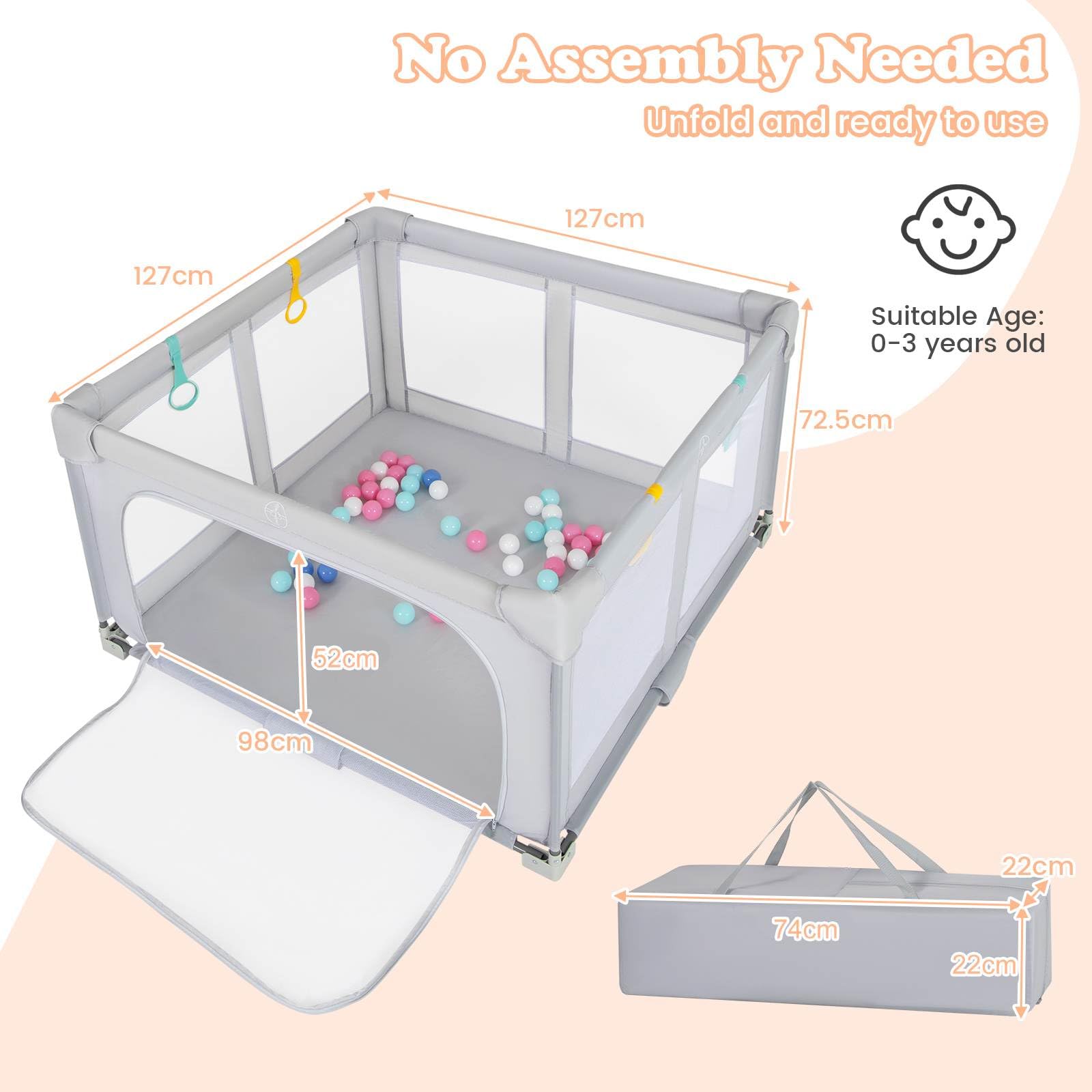 - Spacious Play Area: This large 127 x 127cm playpen provides your baby roomy safe space to crawl, walk, stand, and play freely. It's designed for children up to 3 years old.